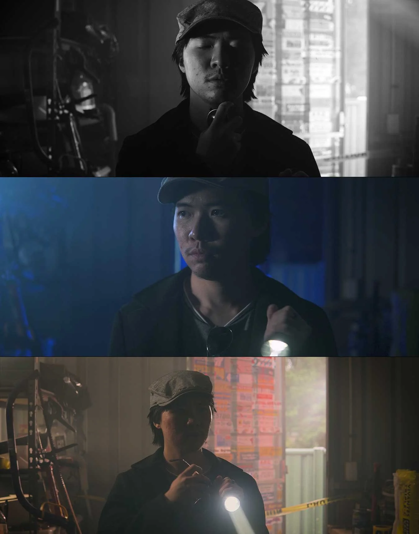 Personal showcase, exploring the powerful effect lighting has on a scene. This scene follows a detective stumbling upon a crime scene in the dead of night, on a scorching day or in a noir-stylised set.